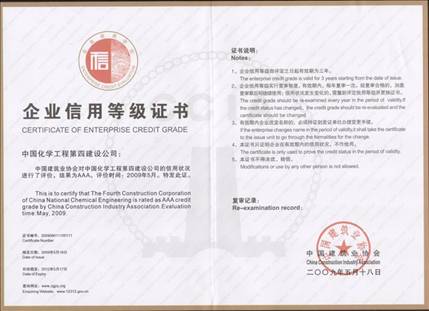 公司在學(xué)習(xí)實踐科學(xué)發(fā)展觀活動中,切實加強信用管理,嚴格履行合同,優(yōu)質(zhì)安全文明施工,積極推進技術(shù)進步,自覺履行社會責(zé)任,取得了可喜的成效。近日,經(jīng)中國建筑業(yè)協(xié)會評定,公司獲評首批全國建筑業(yè)AAA級信用企業(yè)。