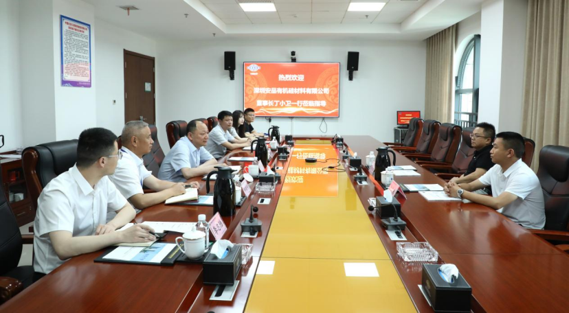 6月3日,公司黨委書記、董事長周鴻在公司總部會見深圳安品有機硅材料有限公司董事長丁小衛一行,雙方就項目合作相關事宜進行了深入交流。