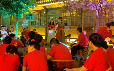 近日,市政工程公司黨支部組織開展“慶‘七一’ 唱首紅歌給黨聽”主題黨(團)日活動,用歌聲追憶歷史,用旋律歌頌祖國。活動中,70余名黨員、團員自由組隊,按照抽簽順序依次上場。從《沒有共產黨就沒有新中國》到《我和我的祖國》,諸多經典紅色歌曲被選手們深情傳唱,激情豪邁地唱響了四化建人對黨的熱愛之情,展現了新征程上四化建人昂揚向上、朝氣蓬勃、勇擔重任的精神風貌。
