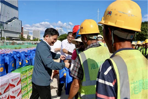 “伏天已至,感謝大家在高溫下堅(jiān)守崗位,你們辛苦啦。”在項(xiàng)目建設(shè)現(xiàn)場,劉再衡向大家送上防暑降溫物品,詳細(xì)詢問職工們的工作情況,了解項(xiàng)目部防暑降溫和安全保障措施,再三叮囑管理人員和職工要合理安排作息時(shí)間,做好防暑降溫措施,確保大家工作開開心心、平平安安。希望職工們增強(qiáng)自我保護(hù)意識(shí),做到勞逸結(jié)合,用良好的身心狀態(tài)來確保項(xiàng)目圓滿完工。