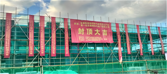 7月31日,由中南公司承建的宜章凱美特特種氣體項目501生產管理辦公樓實現封頂。