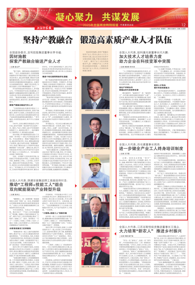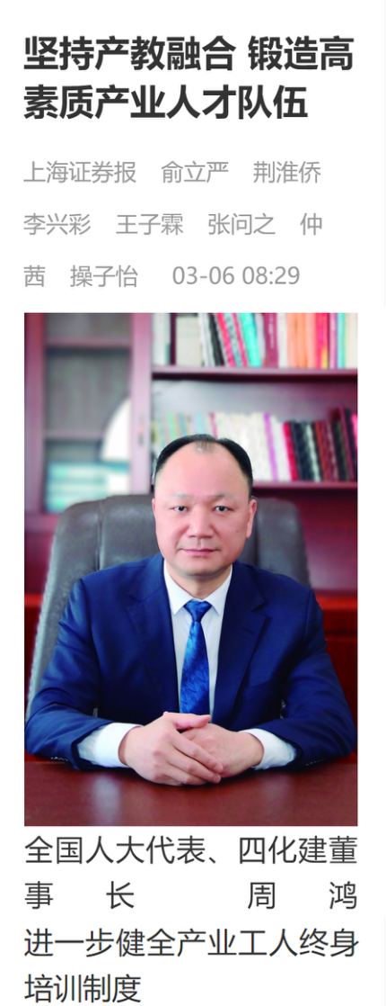 3月6日,證券時報客戶端以“堅持產教融合 鍛造高素質產業人才隊伍”為題報道周鴻的建議:進一步健全產業工人終身培訓制度。