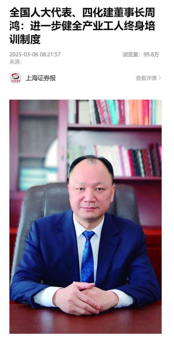 3月6日,《上海證券報》報道周鴻的建議:進一步健全產業工人終身培訓制度。