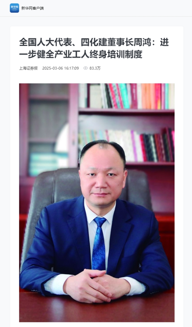 3月6日,新華網客戶端報道周鴻的建議:進一步健全產業工人終身培訓制度。
