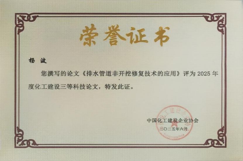 近日,中南公司自主研發(fā)的“大型金屬管道管口校正器及管口校正方法”獲得國(guó)家發(fā)明專(zhuān)利證書(shū),撰寫(xiě)的論文《排水管道非開(kāi)挖修復(fù)技術(shù)的應(yīng)用》獲評(píng)2025年度化工建設(shè)三等科技論文。兩項(xiàng)成果的落地,標(biāo)志著中南公司在施工技術(shù)創(chuàng)新領(lǐng)域邁上新臺(tái)階,為解決工程建設(shè)中的實(shí)際難題提供了更高效、更優(yōu)質(zhì)的技術(shù)方案。