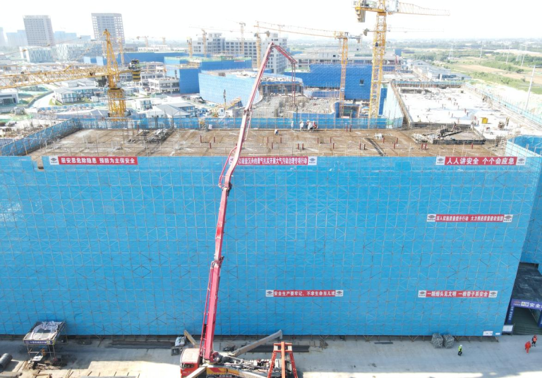 近日,伴隨著混凝土嗡嗡的澆搗聲,由港晨公司承建的岳陽自貿片區(qū)數(shù)字經濟產業(yè)綜合體項目C1棟主體結構封頂。