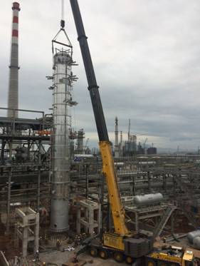 華南分公司成功吊裝惠煉二期項(xiàng)目溶劑再生塔