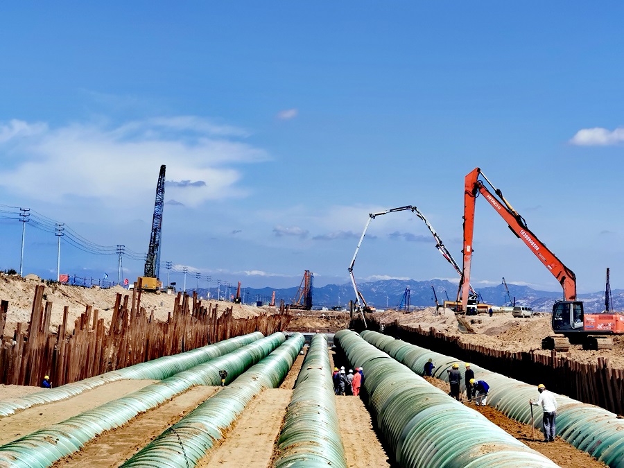 走進(jìn)江西公司承建的山東裕龍石化公用工程區(qū)給排水及消防管網(wǎng)項(xiàng)目工地,現(xiàn)場(chǎng)機(jī)聲隆隆,焊光閃爍。目之所及,吊車挖機(jī)星羅棋布,施工車輛摩肩接踵,與500多名參戰(zhàn)職工繁忙勞碌的身影相互映襯,展現(xiàn)出一幅火熱的施工場(chǎng)景。