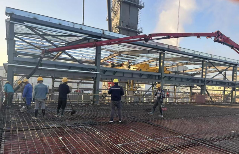 近日,隨著屋面板最后一車(chē)混凝土的澆筑完成,由華東公司承建的廣東河源杭氧空分項(xiàng)目配電房主體結(jié)構(gòu)順利完成封頂。