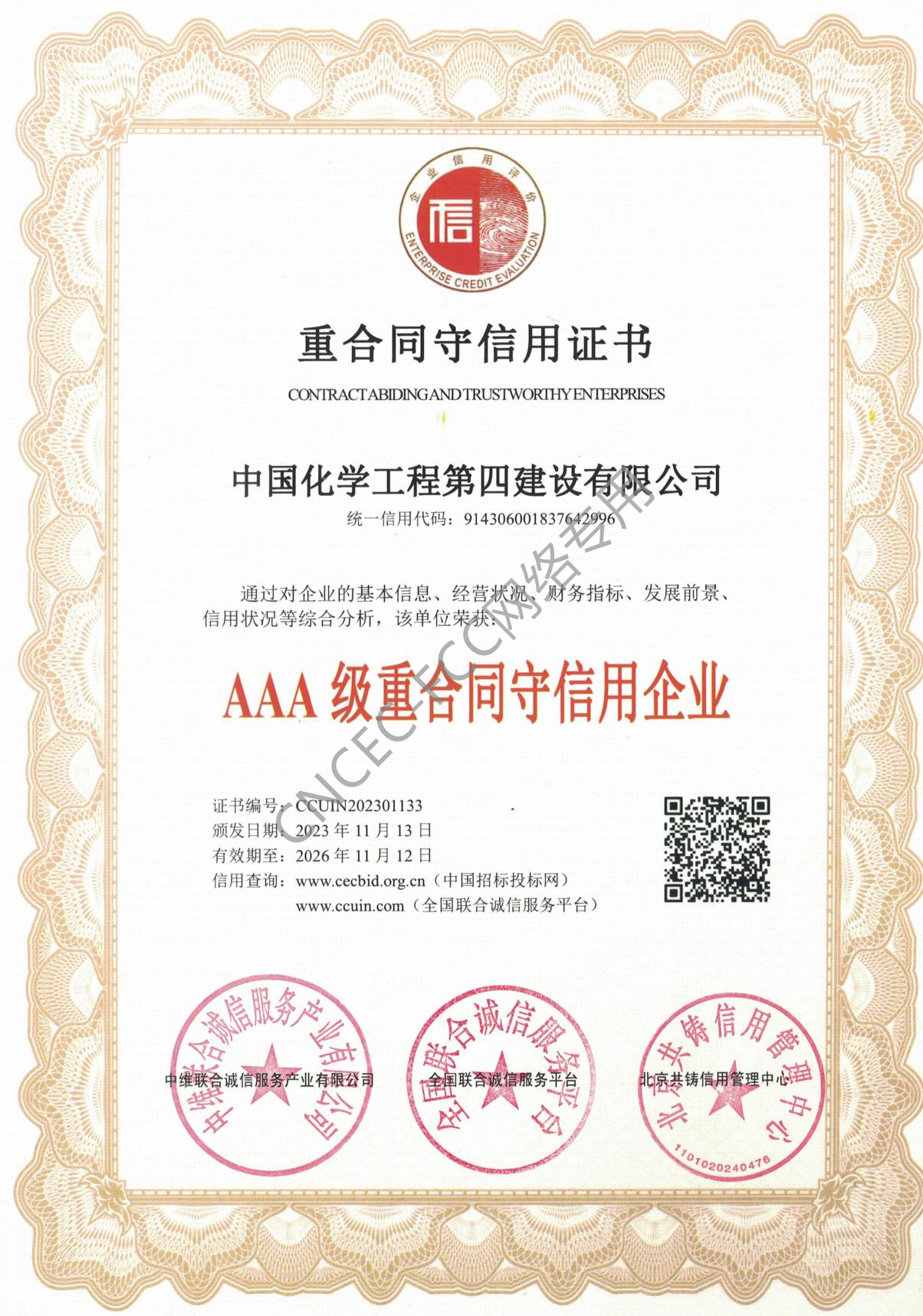 AAA級重合同守信用企業(yè)證書