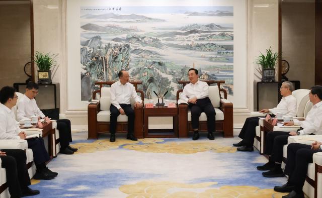 9月29日,中國化學黨委書記、董事長莫鼎革在浙江杭州拜會浙江省委書記、省人大常委會主任王浩,雙方就攜手推進高質量發展進行深入交流。浙江省委常委、常務副省長徐文光,省委常委、秘書長邱啟文參加會談。